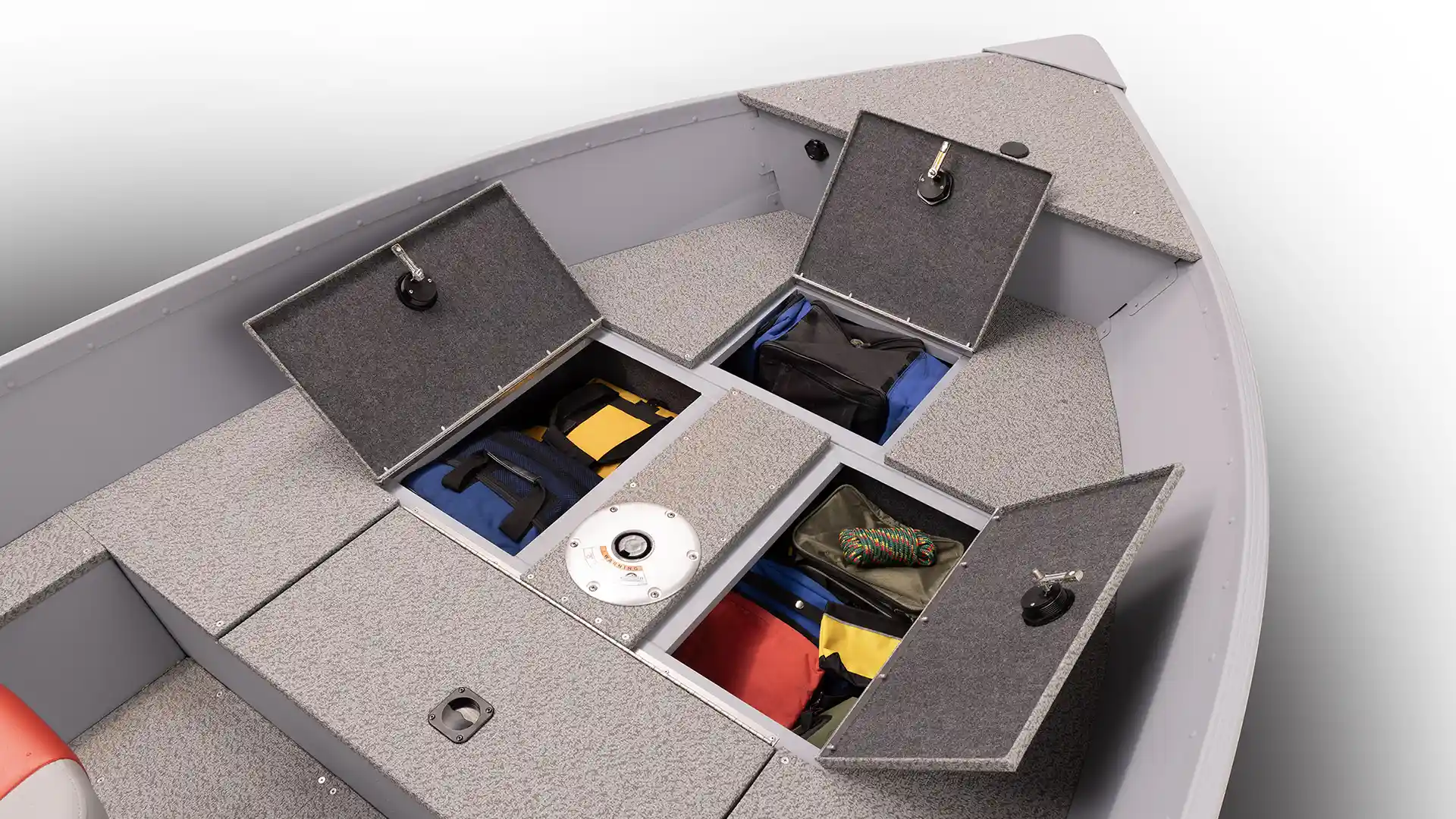 The Guide V150 T tiller handle model offers precise maneuverability and a bold flame red hull. With an unpainted bottom engineered for rocky shorelines, this boat ensures durability and confidence for every fishing adventure.