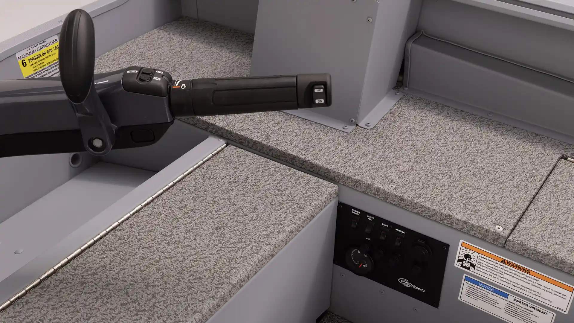 Delivers performance and durability that anglers demand. Its tough V-hull design handles rough waters with ease, while offering stability and control for a comfortable day on the water.